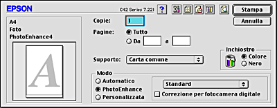 Questo modo consente di scegliere varie impostazioni per la correzione dell'immagine che è possibile applicare alle immagini fotografiche prima della stampa. La funzione PhotoEnhance non altera i dati originali dell'immagine.