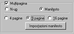 Nel menu Layout (Windows) o nella finestra di dialogo Layout (Macintosh), spuntare la casella Multipagina. Quindi spuntare il pulsante di opzione Manifesto.