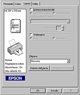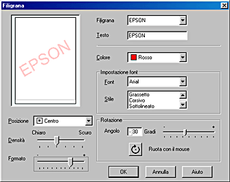 Per Windows: selezionare la filigrana voluta nell'apposito elenco del menu Layout, quindi fare clic sul pulsante Impostazioni.