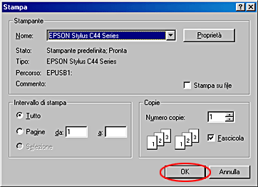 Nella finestra di dialogo che appare, fare clic su Stampante, Imposta, Opzioni o Proprietà. (A seconda dell'applicazione, può essere necessario fare clic su una combinazione di questi pulsanti.) Viene visualizzata la finestra del software della stampante.