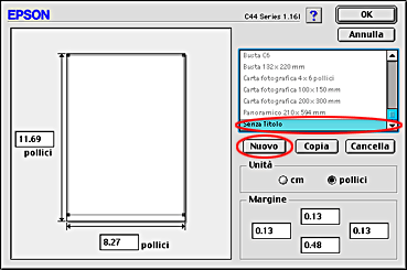Se il formato carta richiesto non è compreso nell'elenco Formato carta nella finestra di dialogo Formato di Stampa, eseguire le operazioni indicate di seguito per definire un formato carta personalizzato.