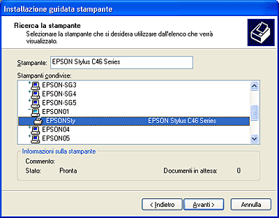 Accesso alla stampante attraverso una rete