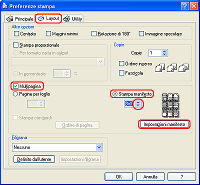 Permette di stampare immagini dal formato manifesto; a tal fine, una pagina viene ingrandita per coprire un certo numero di fogli.