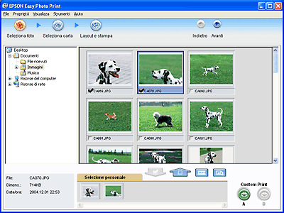 Fare doppio clic sull'icona EPSON File Manager sul desktop, selezionare le immagini da utilizzare, quindi fare clic sull'icona Easy Photo Print nella parte superiore della finestra di EPSON File Manager.