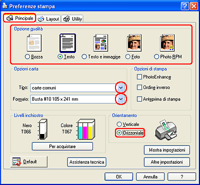 L'impostazione Economy presente in Opzioni carta e qualità nel menu Altre impostazioni non è disponibile quando si stampa su buste.