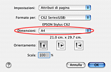 Selezionare A4 come impostazione di Dimensioni. Quindi, fare clic su OK per chiudere la finestra di dialogo.