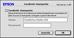 Per condividere una stampante con altri computer connessi ad una rete AppleTalk, eseguire le operazioni indicate di seguito per configurare il computer a cui la stampante è collegata.