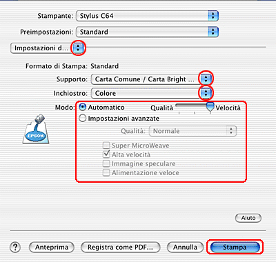 Impostazioni del driver per Mac OS X