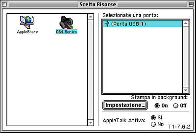 Scegliere Scelta Risorse dal menu Apple, fare clic sull'icona della propria stampante, quindi selezionare la porta alla quale è collegata la stampante.