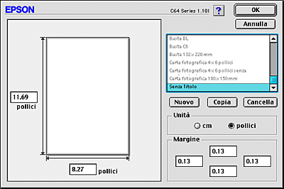 Definizione di formati carta personalizzati per Mac OS versione da 8.6 a 9.x