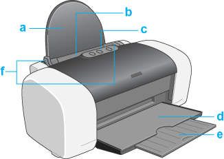 c. Coperchio stampante: Copre il meccanismo di stampa. Aprire solo per installare o sostituire le cartucce d'inchiostro.