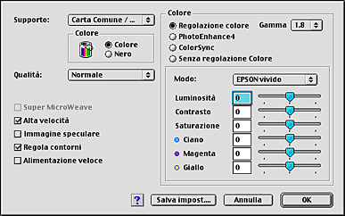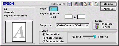 Quando è selezionato il modo Automatico , il software della stampante definisce automaticamente tutte le impostazioni dettagliate in base a quelle correnti di Supporto e Colore.