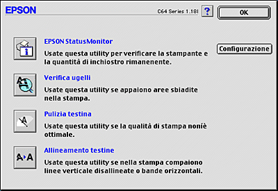 Le utility della stampante EPSON consentono di controllare lo stato corrente della stampante e di svolgere alcune operazioni di manutenzione dal computer.