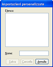 Per salvare le impostazioni avanzate effettuate nell'elenco Impostazioni personalizzate, fare clic su Salva impost.. Viene visualizzata la finestra di dialogo Impostazioni personalizzate.
