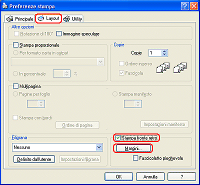 Fare clic sulla scheda Layout, quindi selezionare la casella di controllo Stampa fronte-retro.