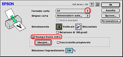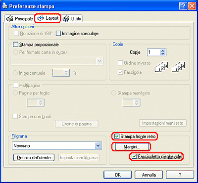 Questa funzione non è disponibile quando si seleziona la casella di controllo Senza margini nel menu Principale (Windows) o nella finestra di dialogo Formato di Stampa (Macintosh).