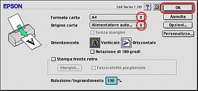 ![]() | Selezionare Stylus C64 come impostazione di Formato per. |