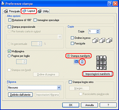 Nella finestra di dialogo Layout, selezionare la casella di controllo Multipagina, quindi selezionare Manifesto.