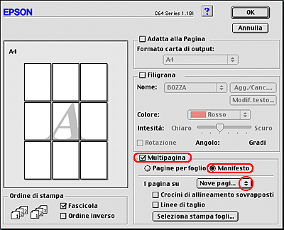 Permette di stampare immagini dal formato manifesto; a tal fine, una pagina viene ingrandita per coprire un certo numero di fogli.