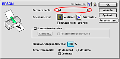 Selezionare A4 come impostazione di Formato carta. Quindi, fare clic su OK per chiudere la finestra di dialogo.