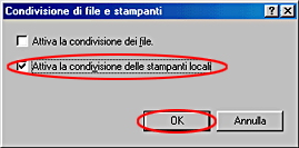 Selezionare la casella di controllo Attiva la condivisione delle stampanti locali e fare clic su OK.