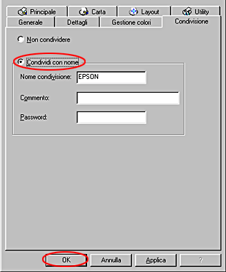 Configurazione della stampante come stampante condivisa