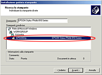 Selezionare Stampante di rete, quindi fare clic su Avanti.