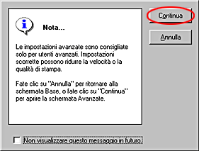 ![]() | Nel menu Principale, fare clic su Altre impostazioni. Se appare la finestra delle note sotto riportata, fare clic su Continua. Verrà visualizzato il menu con le impostazioni avanzate. |