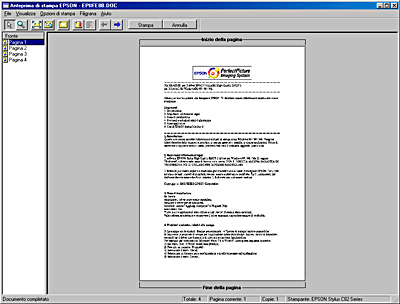 Quando si invia un lavoro di stampa alla stampante, si aprirà la finestra Anteprima di stampa EPSON, che consente di effettuare cambiamenti prima della stampa vera e propria.