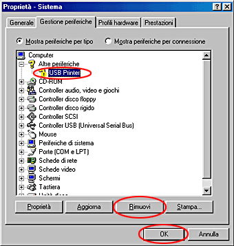 In Altre periferiche, selezionare Stampante USB o EPSON Stylus C82 Series e fare clic su Rimuovi. Quindi, fare clic su OK.