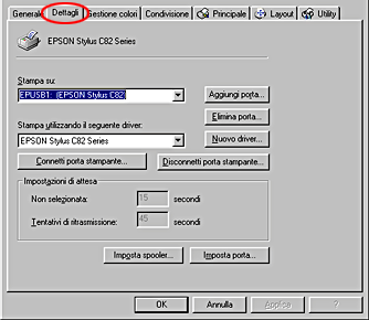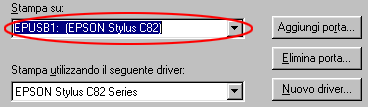 Se EPUSBX: (EPSON Stylus C82) appare nella casella di riepilogo Stampa su, significa che il driver di stampa USB e il software della stampante sono installati in modo corretto. Se non viene visualizzata la porta corretta, procedere al passaggio successivo.