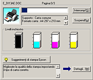 È possibile annullare la stampa utilizzando la Barra di avanzamento o EPSON Spool Manager. Fare riferimento alla sezione appropriata riportata di seguito.