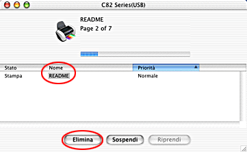 Per annullare un lavoro di stampa, selezionare il lavoro dall'elenco, quindi fare clic su Annulla.