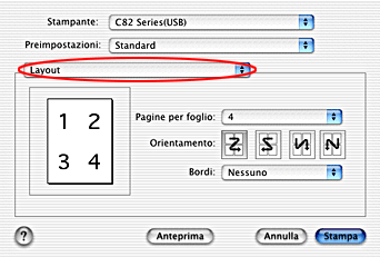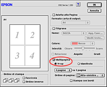 Nella finestra di dialogo Layout (Macintosh), selezionare la casella di controllo Multipagina e quindi selezionare N-up.