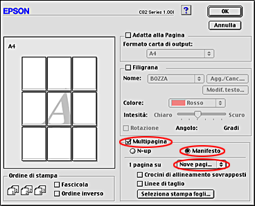 Permette di stampare immagini dal formato manifesto; a tal fine, una pagina viene ingrandita per coprire un certo numero di fogli.