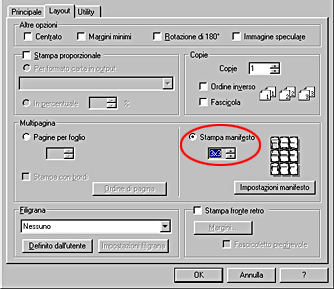 Per la stampa di un manifesto, definire le seguenti impostazioni.