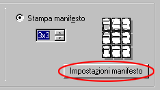 Fare clic sul pulsante Impostazioni manifesto per regolare il modo in cui verrà stampato il manifesto. Si aprirà la finestra di dialogo Impostazioni manifesto.