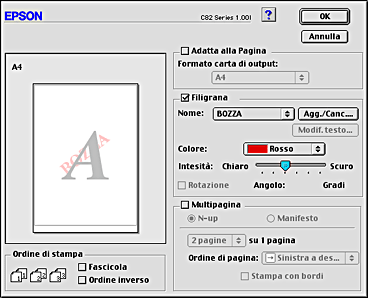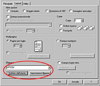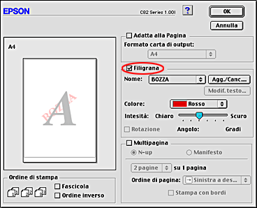 In Macintosh, selezionare la casella Filigrana della finestra di dialogo Layout, quindi selezionare la filigrana voluta nell'elenco Nome.