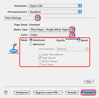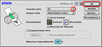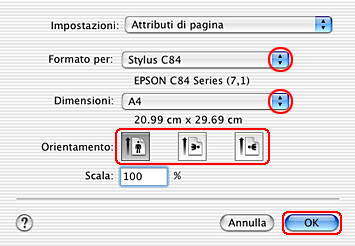 ![]() | Selezionare Stylus C84 come impostazione di Formato per. |