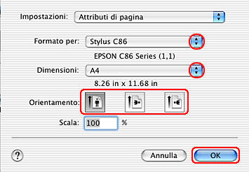 Effettuare l'impostazione appropriata di Formato per. Quando si stampa con i margini standard, selezionare Stylus C86.
