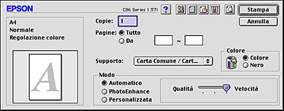 Quando è selezionato il modo Automatico, il software della stampante definisce automaticamente tutte le impostazioni dettagliate in base a quelle correnti di Supporto e Inchiostro.