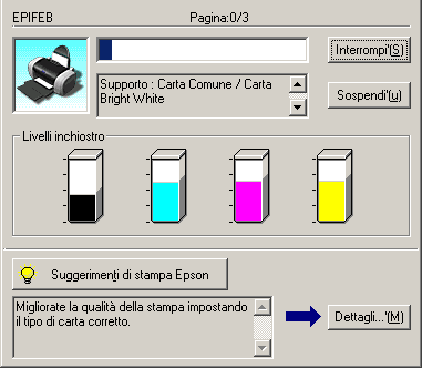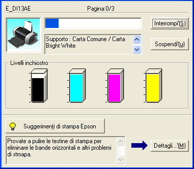 Quando si invia un lavoro di stampa alla stampante, sullo schermo del computer appare la barra di avanzamento.