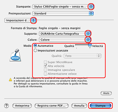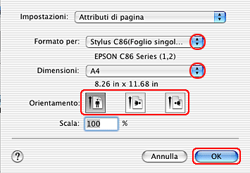 Selezionare Stylus C86 (Sheet Feeder - Borderless) come impostazione di Formato per.