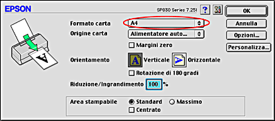 Selezionare A4 come impostazione di Formato carta. Quindi, fare clic su OK per chiudere la finestra di dialogo.