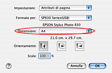 Selezionare A4 come impostazione di Dimensioni. Quindi, fare clic su OK per chiudere la finestra di dialogo.