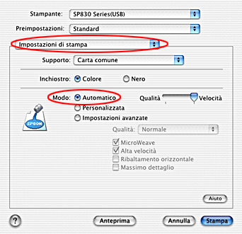 Selezionare Carta comune come impostazione di Supporto e Automatico come impostazione di Modo.