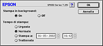 ![]() | Selezionare On come opzione di Stampa in background, se necessario. |
