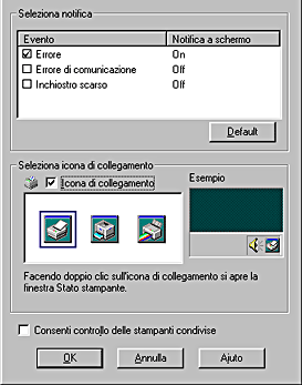 Fare clic su questo pulsante per aprire la finestra di dialogo Preferenze di controllo, in cui è possibile definire impostazioni per EPSON Status Monitor 3.