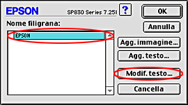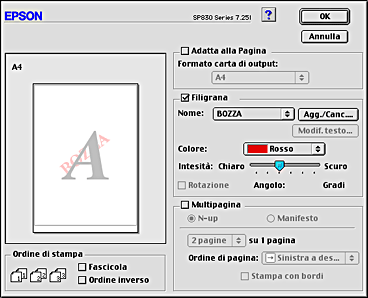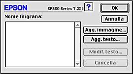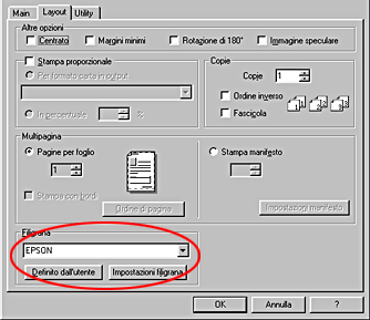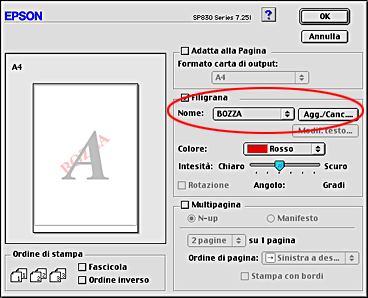 In Macintosh, selezionare la casella Filigrana della finestra di dialogo Layout, quindi selezionare la filigrana voluta nell'elenco Nome filigrana.