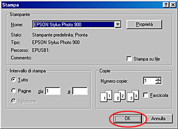 ![]() | Scegliere Stampa o Impostazioni stampante dal menu File dell'applicazione Windows. |
